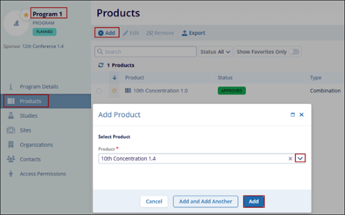 To add a product at a program level, follow the steps below: