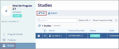 To edit a study associated at a program level, follow the steps below.