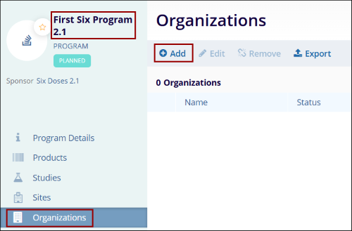 To add an organization at the program level, follow the steps below.