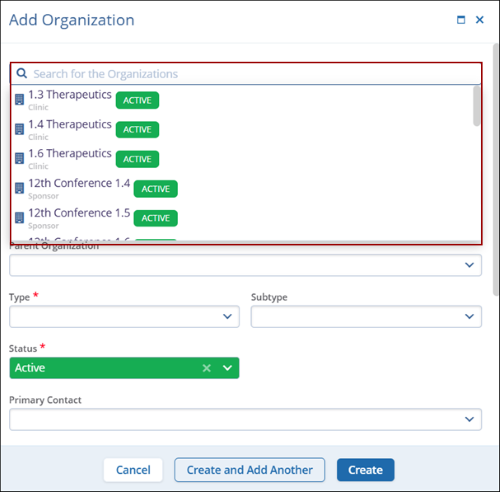 - To add an existing organization, click on the Search for the Organizations
