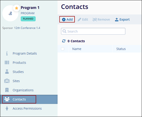 To add contacts at a program level, follow the steps below: