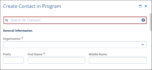 - To add an existing contact, click on the Search for Contacts search box and