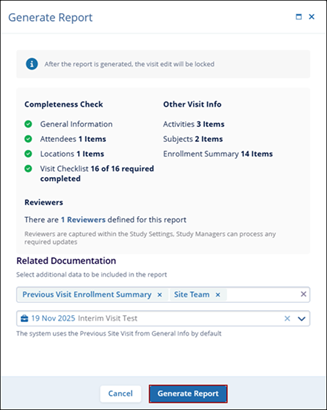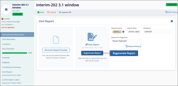 In CTMS, make changes to the visit information and click on the Regenerate Report.