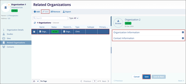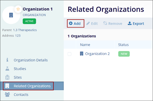 - On the Organization Details screen, click on the Related Organizations from the left-hand navigation links.