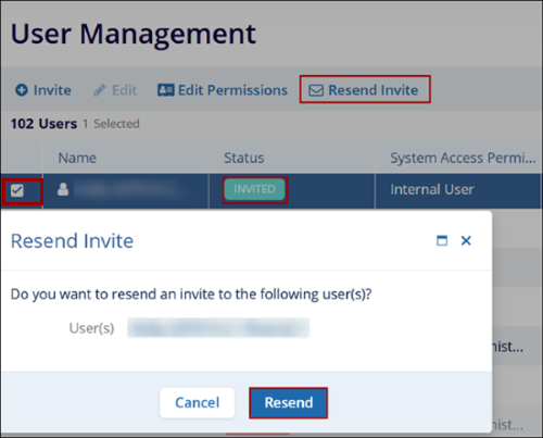 - Once the invitation is successfully sent to the user, the success message is displayed.