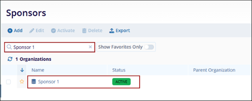 - Click on the Magnifying Glass icon or the Search textbox and enter the Sponsor’s name or a related keyword into the search bar.