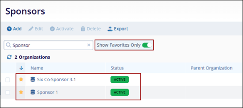- On the Sponsors screen, click on the Filter button to apply filters.