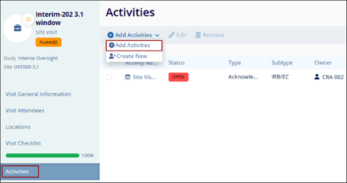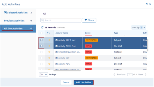 - Once the activities are selected, click on the Add Activities button.