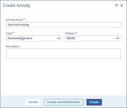 On the Create Activity form, add the required details and click ‘Create’.