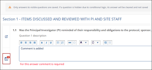 - The answer is selected and saved only after a comment is mentioned in the empty field.