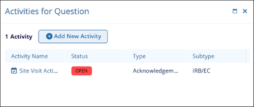 - The View Activities tab for the question shows the total number of activities linked to