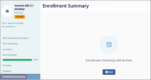 - As a result, any changes made to a subject’s status at the visited site after the visit completion date will not be automatically reflected in the Enrollment Summary section of the Site Visit.