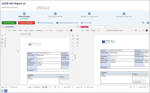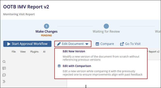 If Edit With Comparison is selected, users can edit a new version while comparing it with the previous one.