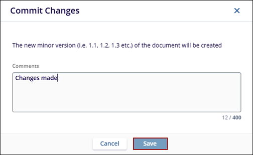 In the Commit Changes window, enter the comments and click Save.