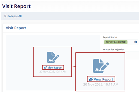 - On the Visit Report screen, click on the View Report link.