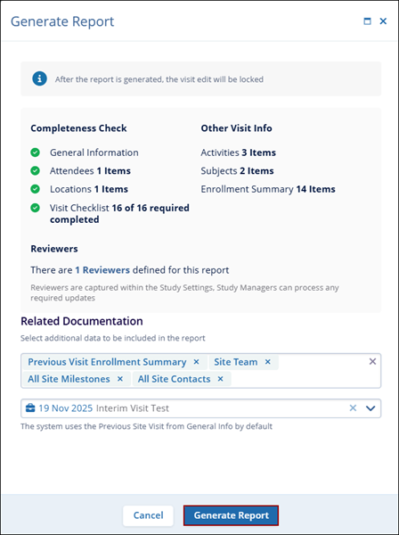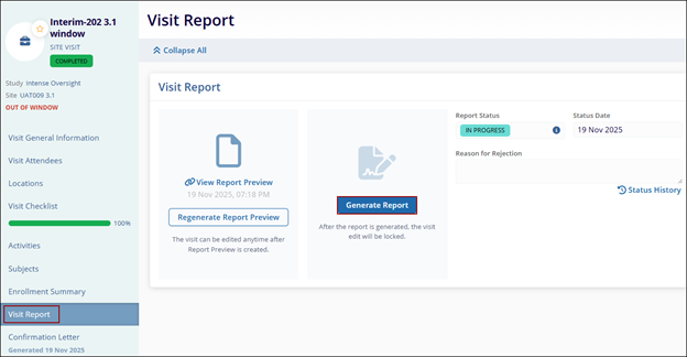 To generate the Site Visit Final Report, follow the steps below: Ensure that the visit status is completed.