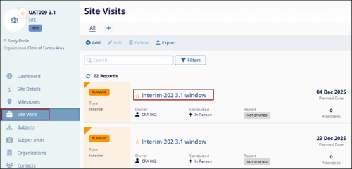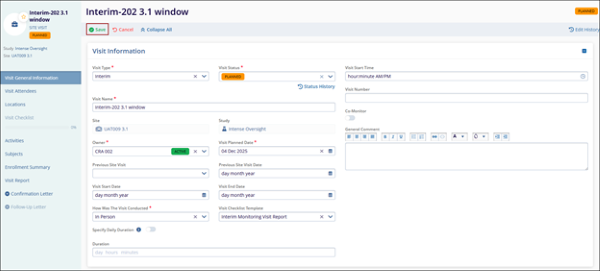 - On the Site Visit General Information window, review the visit details, and make the required changes to the Visit Information and Additional Information section.