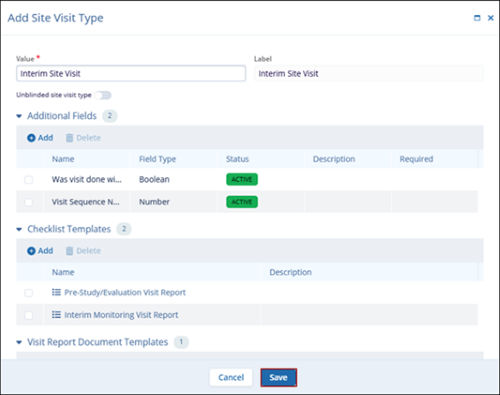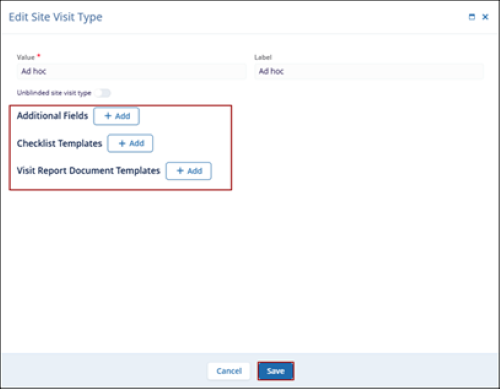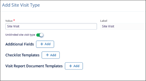 - Optionally enable the Unblinded site visit type toggle switch.