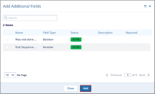- Select the required fields and click Add.