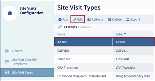 To edit site visit types, follow the steps below: