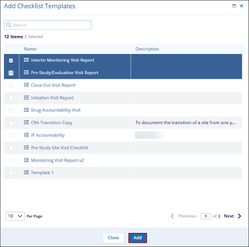 - Select the required templates and click the Add button.