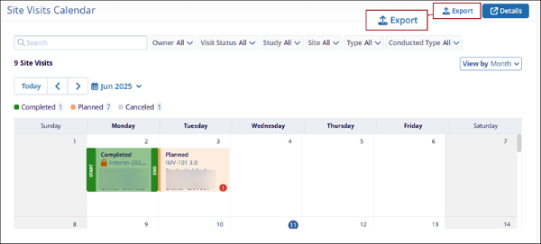 Export Site Visits Calendar
