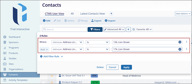 - When the Or condition is applied, 134, Red Lion Street, London will be displayed by the system, as the initially configured filter takes precedence over the others.