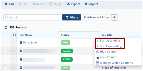 - Click on Apply and the columns will display records based on the sorting criteria applied.