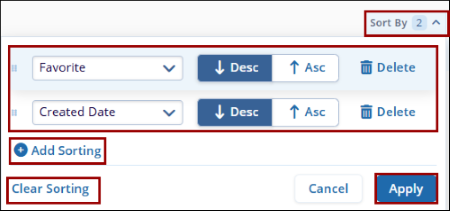 - Click on the +Add Sorting button to add multiple sorting criteria.