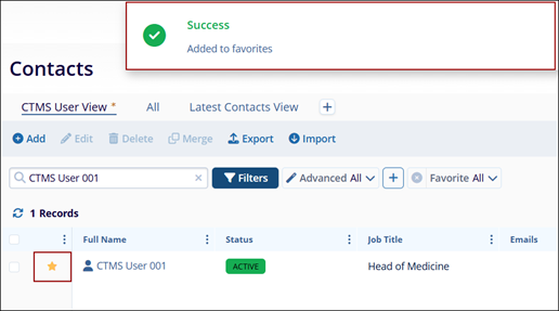 - The system displays a success notification once a contact is successfully added as a favorite.