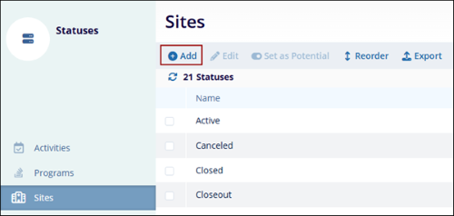 - Select the particular module (Programs, Sites, etc.)