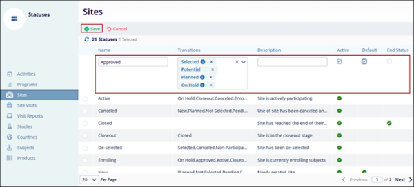 - Check the box in the Is End column (or uncheck the box to indicate a status as non-final)