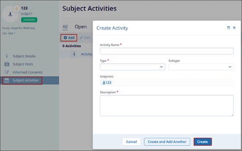 - Click on the Subject Activities link from the left-hand navigation pane.