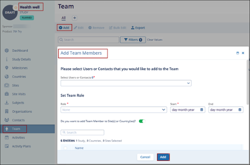 - When someone is added to the study team, they are not awarded access to view study information in the CTMS. This area is specifically designed to track members of the team and which role(s) they are fulfilling for this specific study.