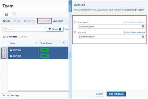 To export Team member details, refer to the standard export process detailed in various sections of this guide.