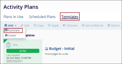 edit, copy, apply, activate, set to retired and delete activity plan template