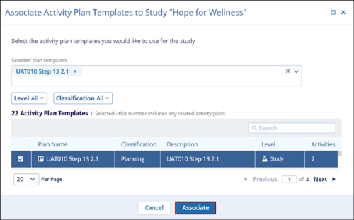 - On the Associate Activity Plan Templates to Study screen, select the plans and click