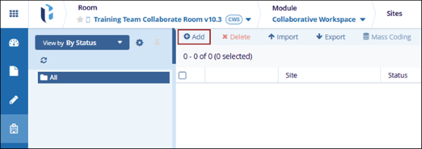 - Click on the Sites modal from the left-hand navigation pane within the Collaborative Workspace module.