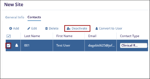 De-activate Contact: To deactivate a contact, follow the steps below.