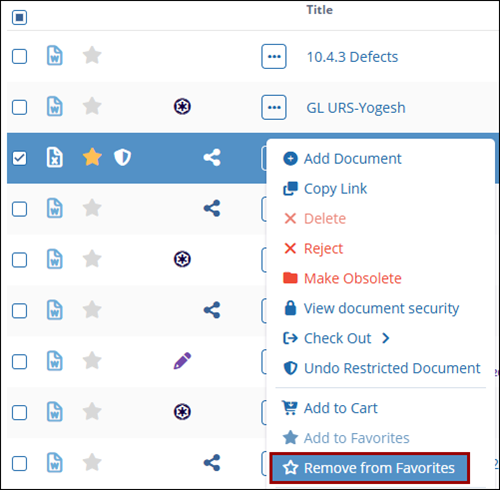 - Select a document and click on the Add to Favorites button from the