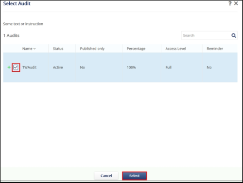 Note: The audits displayed are those that have been created in the Quality Review module specifically to have documents added to them in this manner.