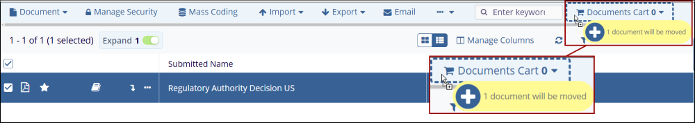 - Else, drag the document(s) to the documents cart.