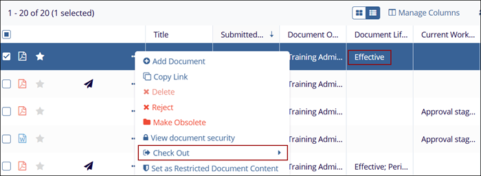 Effective Documents can be routed through an administrative workflow. Effective versions of controlled documents will sometimes require a minor housekeeping change after approval. These changes should not impact the effectiveness of the document. An example of this type of change would be correcting a minor typo. It would be inconvenient to use the full versioning workflow in correcting such a trivial error, and this is why TI Collaborate includes a feature called Administrative Workflow.