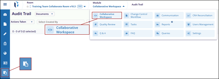 To access the Audit Trail modal within the Collaborative Workspace module, follow the steps below.