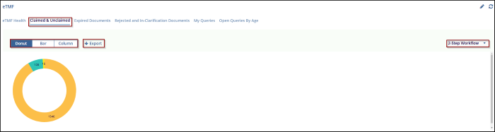 - Navigate to the eTMF dashboard and click on the Claimed & Unclaimed tab.
