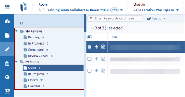 To view documents within a collaborative session by different criteria, follow the steps below.
