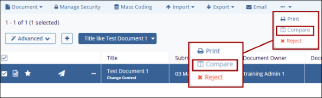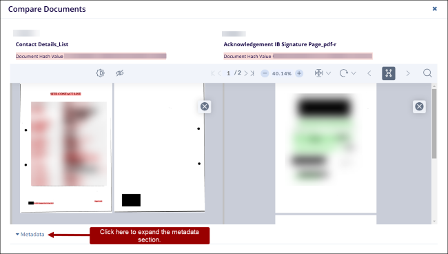 The selected documents will appear side-by-side in a pop-out window along with any associated metadata.