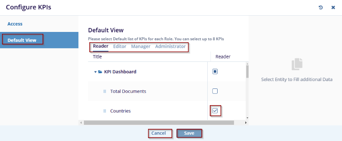 - On the Access tab, expand the KPI Dashboard fields using the arrow and select the