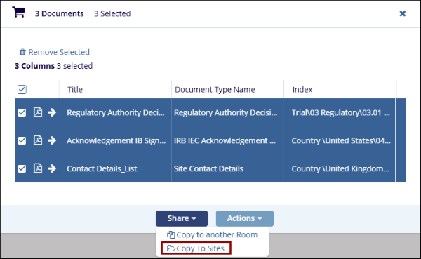 Administrators can access the documents cart to avoid copying documents such as training documents individually across different investigative sites.