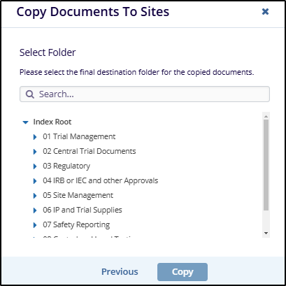 - Select a folder and click on the Copy button. The documents are copied to the